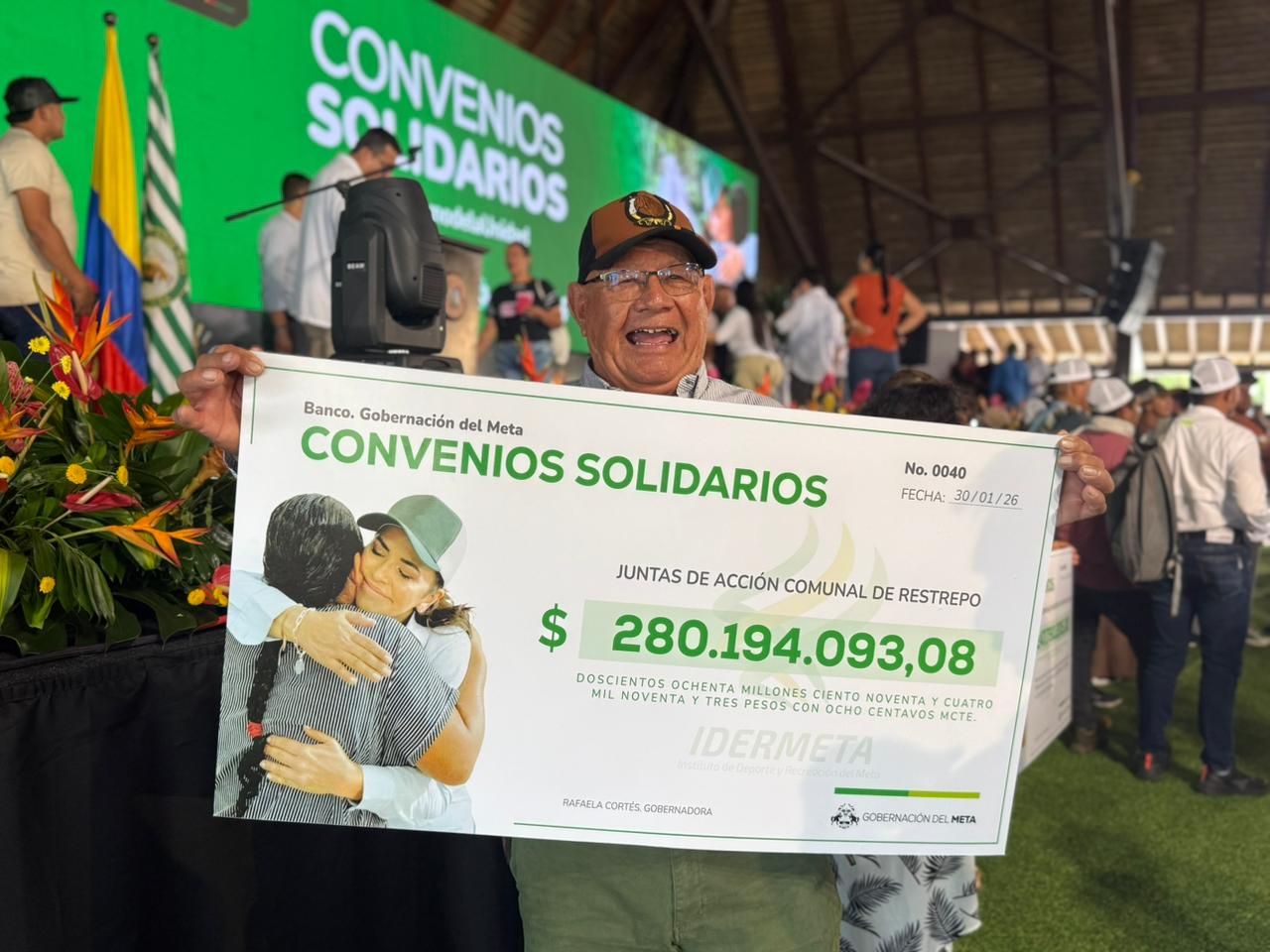 Villavicencio 2 de febrero 2026.- En el marco de #ExpoMalocas2026, la Agencia para la Infraestructura del Meta (AIM), bajo el liderazgo de su gerente Sergio Muñoz, y en compañía de la gobernadora del Meta, realizó la firma de 149 convenios solidarios junto a presidentes de Juntas de Acción Comunal y alcaldes de 27 municipios del departamento, una apuesta decidida por el fortalecimiento de los territorios y el trabajo articulado con las comunidades.