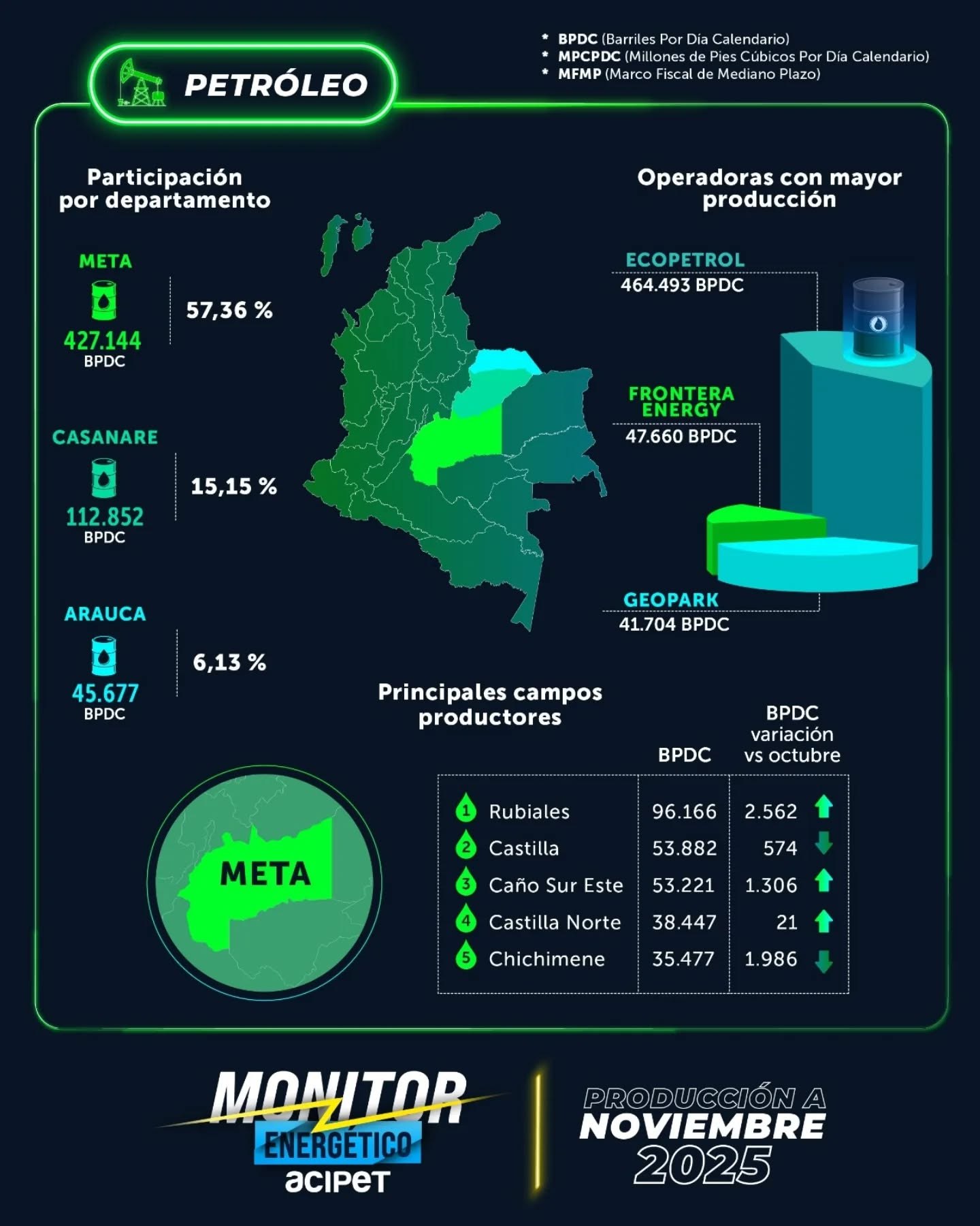 Meta y Casanare lideraron la producción petrolera