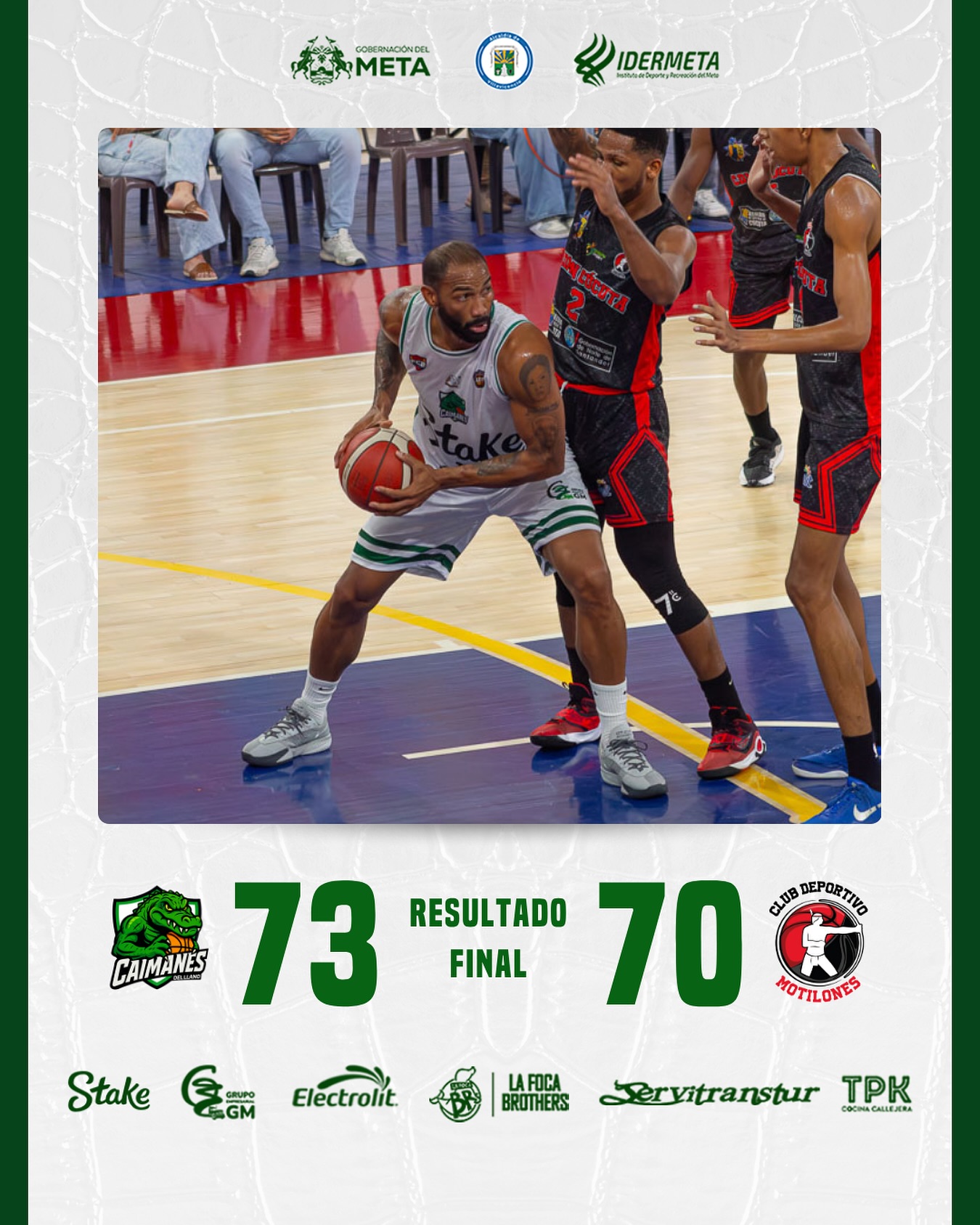 Villavicencio 16 de octubre 2025.- Caimanes del Llano consiguió su primera victoria en el segundo semestre de la Liga Profesional de Baloncesto contra Motilones del Norte en el Coliseo Álvaro Mesa Amaya con un resultado de 73-70.