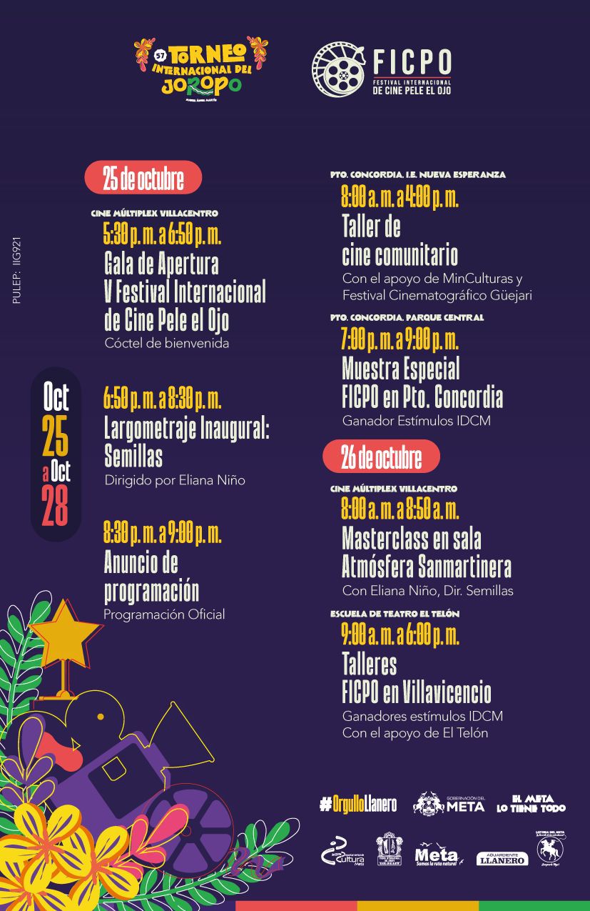 Toda la programación está disponible en las redes sociales @festivalpeleelojo y @torneodeljoropooficial, así como en la página oficial www.culturameta.gov.co