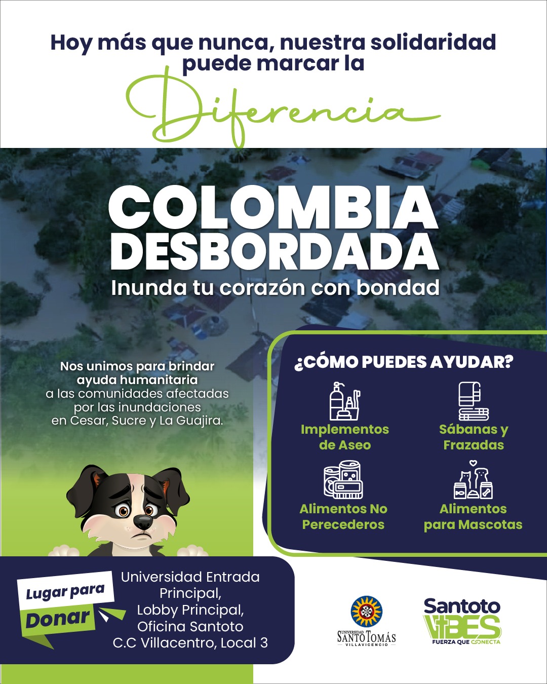 Villavicencio, 12 feb 2026.- Fiel a sus valores ancestrales y su compromiso con el humanismo cristiano, la Universidad Santo Tomás Seccional Villavicencio anuncia el lanzamiento de su campaña de solidaridad para apoyar a las familias damnificadas por las recientes inundaciones en los departamentos de Cesar, Córdoba y La Guajira.