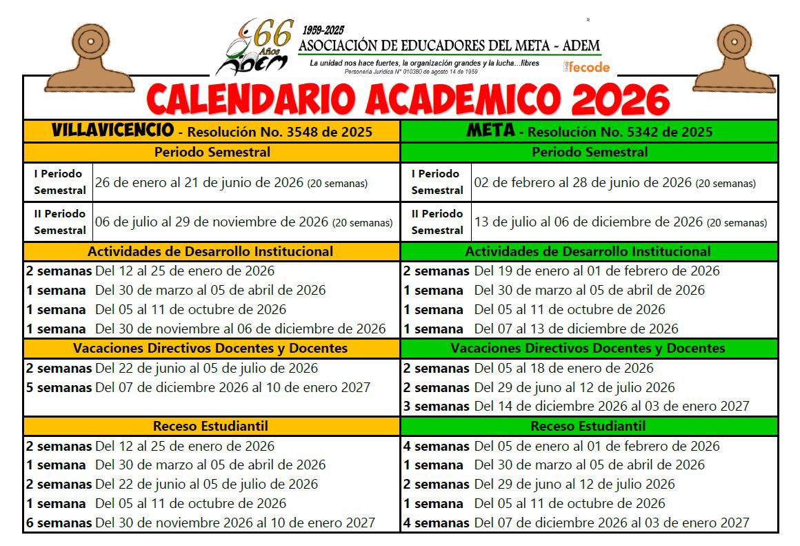 Villavicencio 15 de diciembre 2025.- Los docentes de Villavicencio y el departamento del Meta finalizaron el pasado 12 de diciembre su año escolar 2025 y entraran en un periodo de descanso para iniciar de nuevo el próximo año.