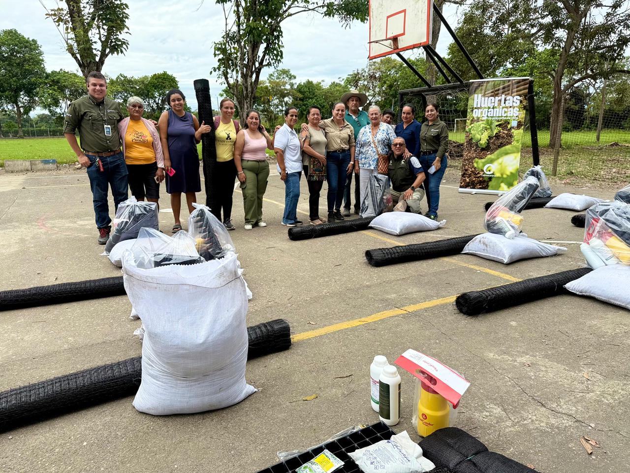 Cada kit de huerta entregado incluye malla gallinera, bandejas de germinación, bomba aspersora, variedad de semillas, polisombra, herramientas de jardinería, abono orgánico compostado, micorriza, fertilizante orgánico y un biorepelente natural y biodegradable. Con estos elementos, las familias podrán producir alimentos libres de químicos, aprovechar los residuos orgánicos y fortalecer su economía doméstica.